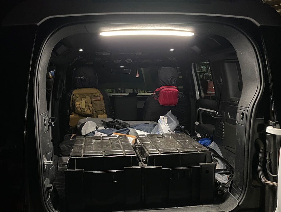 Added this additional LED light which really brightens up the rear cabin. Find it at Defender3D.