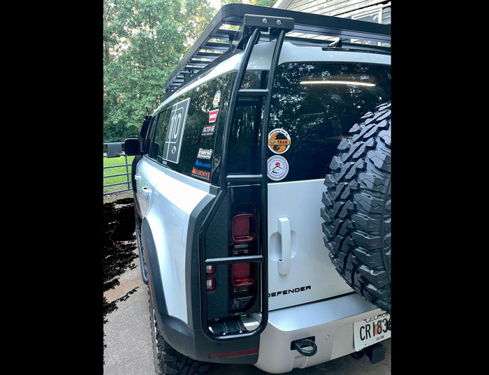 Custom installed the Lucky 8 Proud Rhino rear ladder to the Front Runner roof rack. Find it at Lucky 8*.