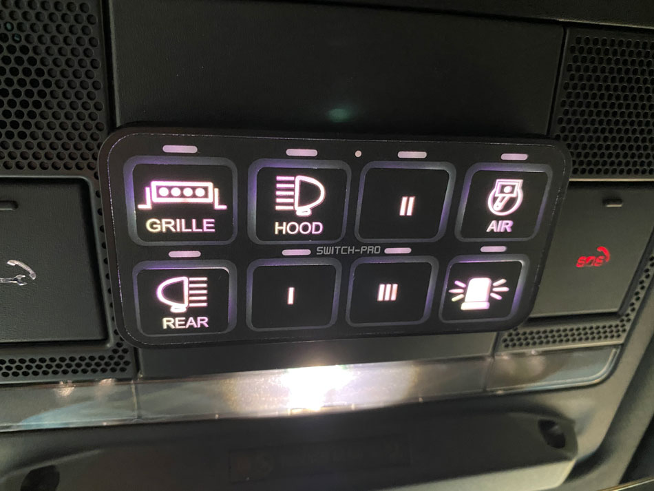 Installed this switch panel to control a variety of items including accessory lights, air compressor, disable parking sensors, etc. Find it at Amazon.