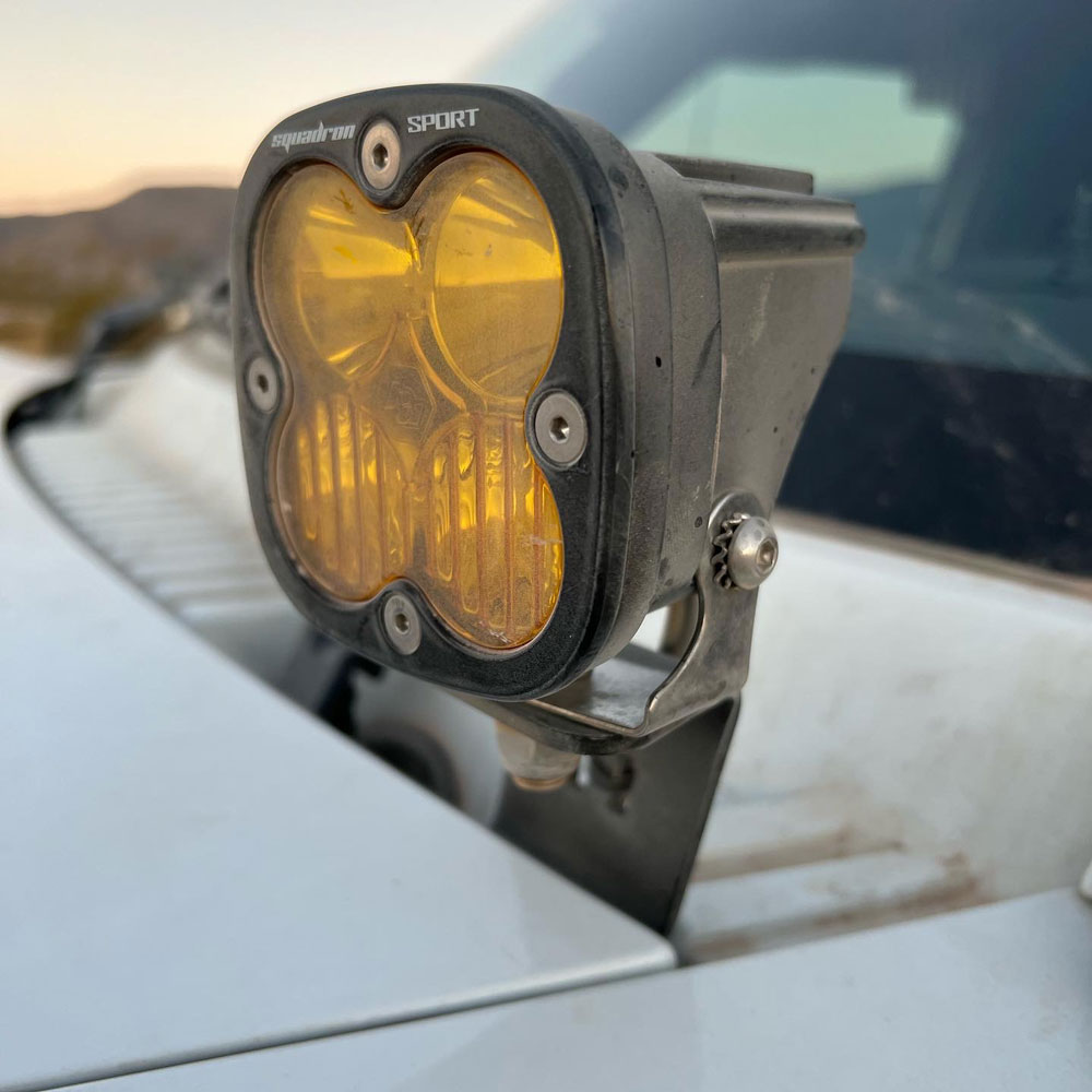 Our ditch lights brighten our field of view. Product info found at Baja Designs. Bracket by Saltek Motorsports.