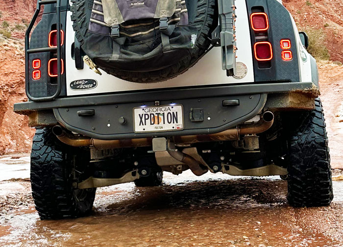 Again, custom built aluminum back bumper from Sarek Autoworke. Increases the departure angle…and frankly, it looks badass.