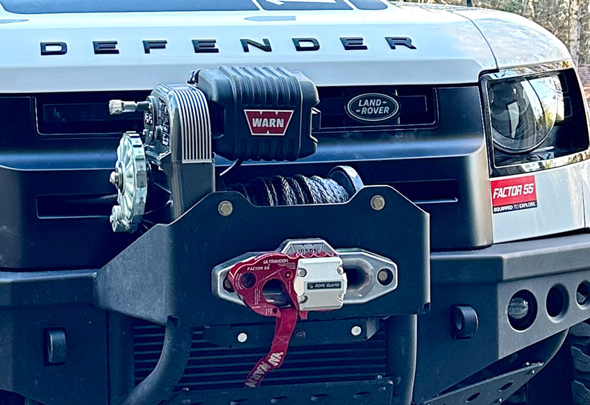 The bumper is designed to place the winch higher for easier access and less likely to get waterlogged or muddy. This is the Warn winch M8274-S (10,000 lb). See it at Amazon.